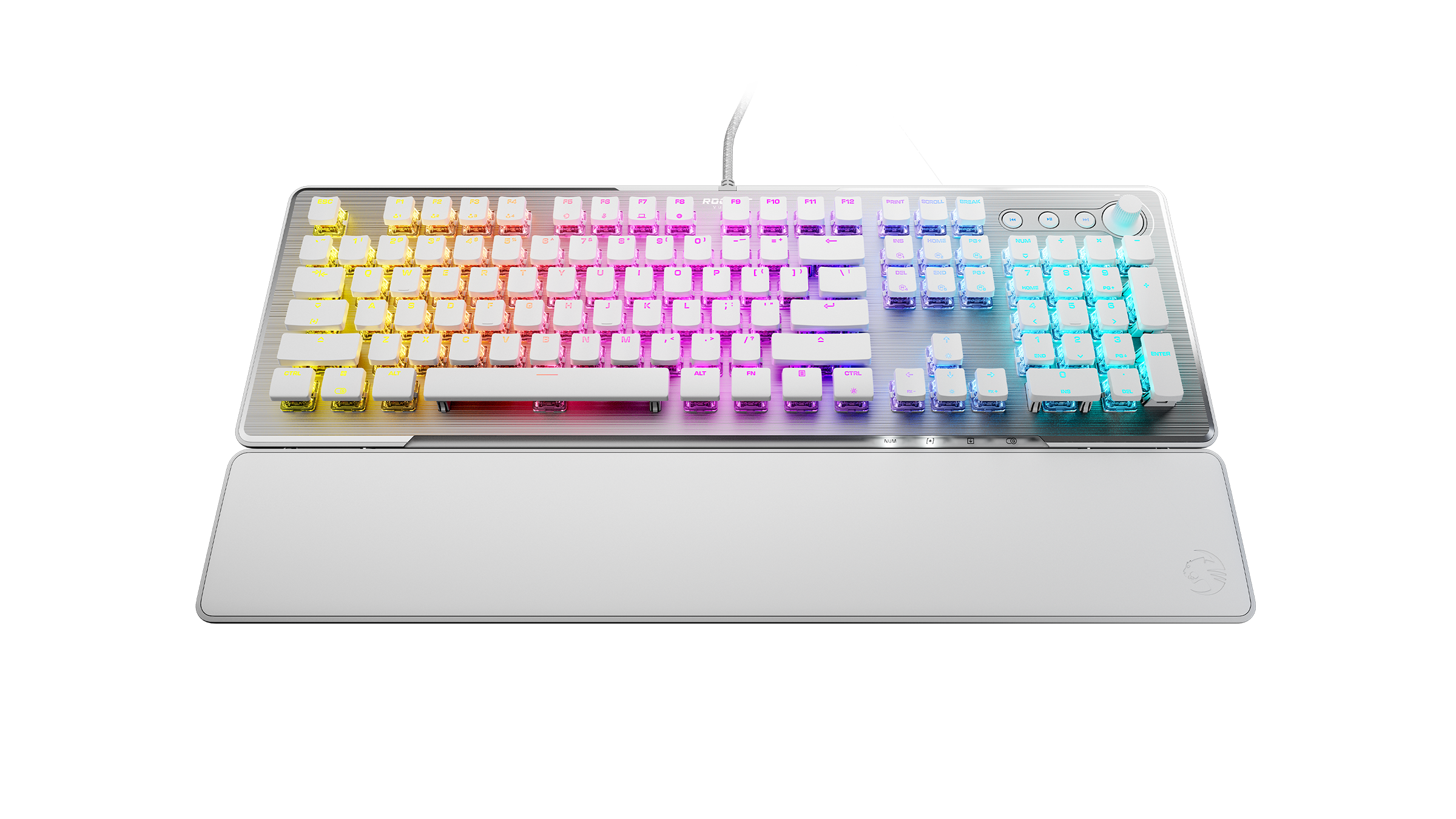 - Dedicated media controls and push to mute volume knob